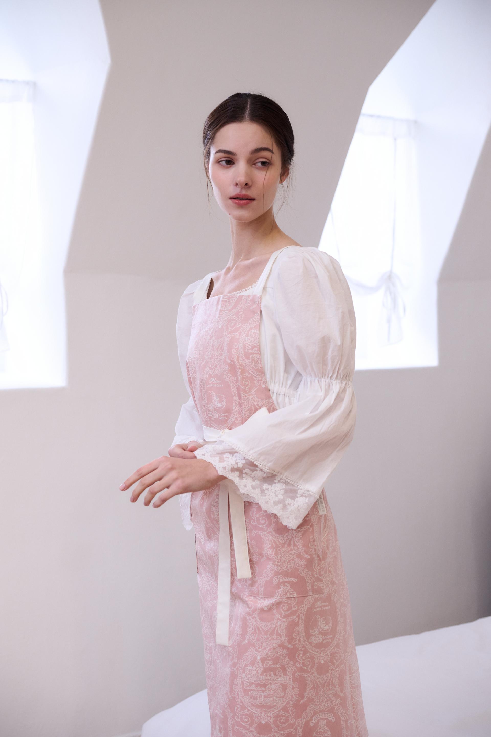- 허리 끈이 길게 제작되어 앞으로 묶은 후 허리 라인 강조하여 착용 가능