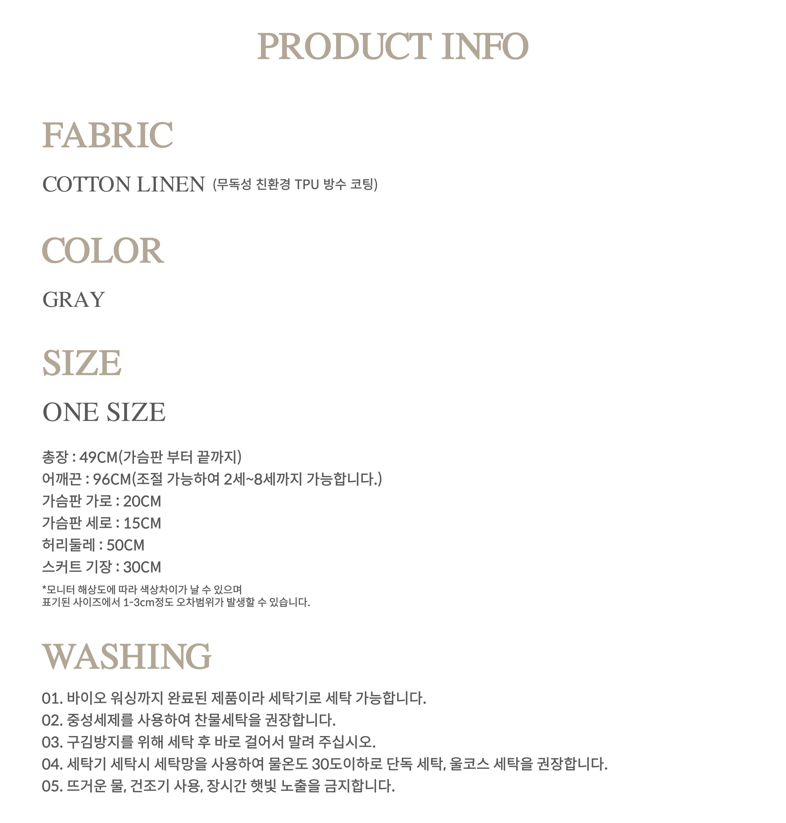 - 고급 면린넨 바이오 워싱, 무독성 친환경 TPU코팅까지 완료 된 생활 방수 앞치마