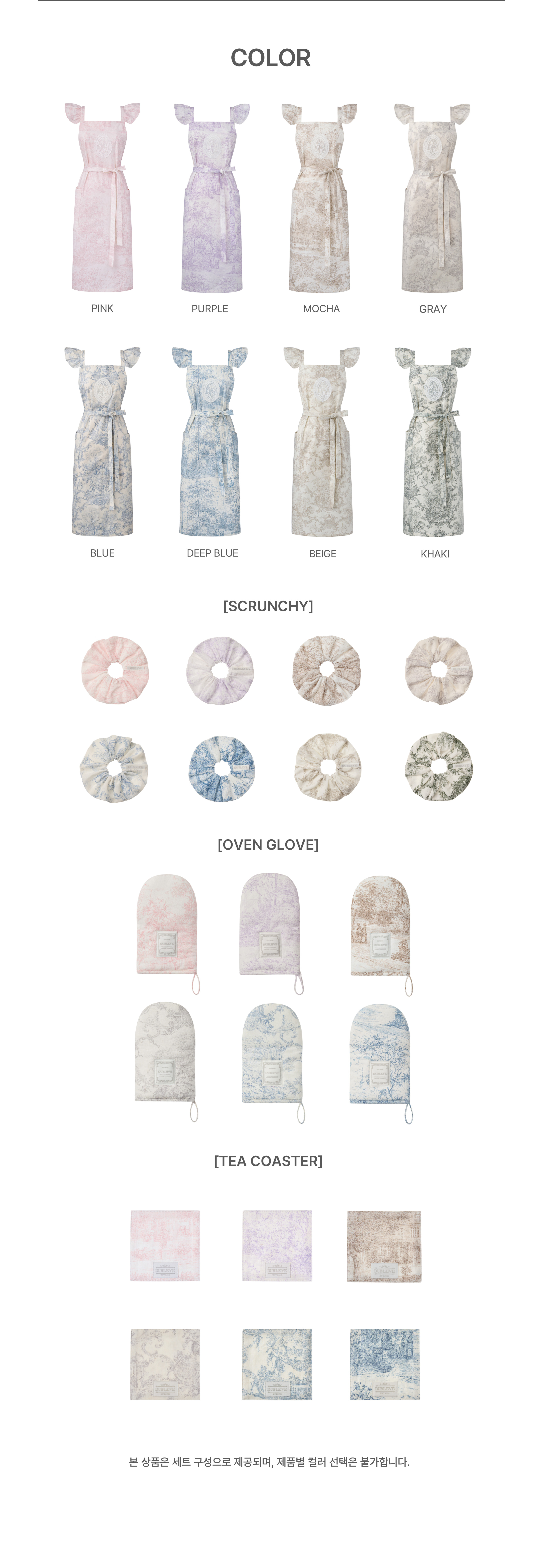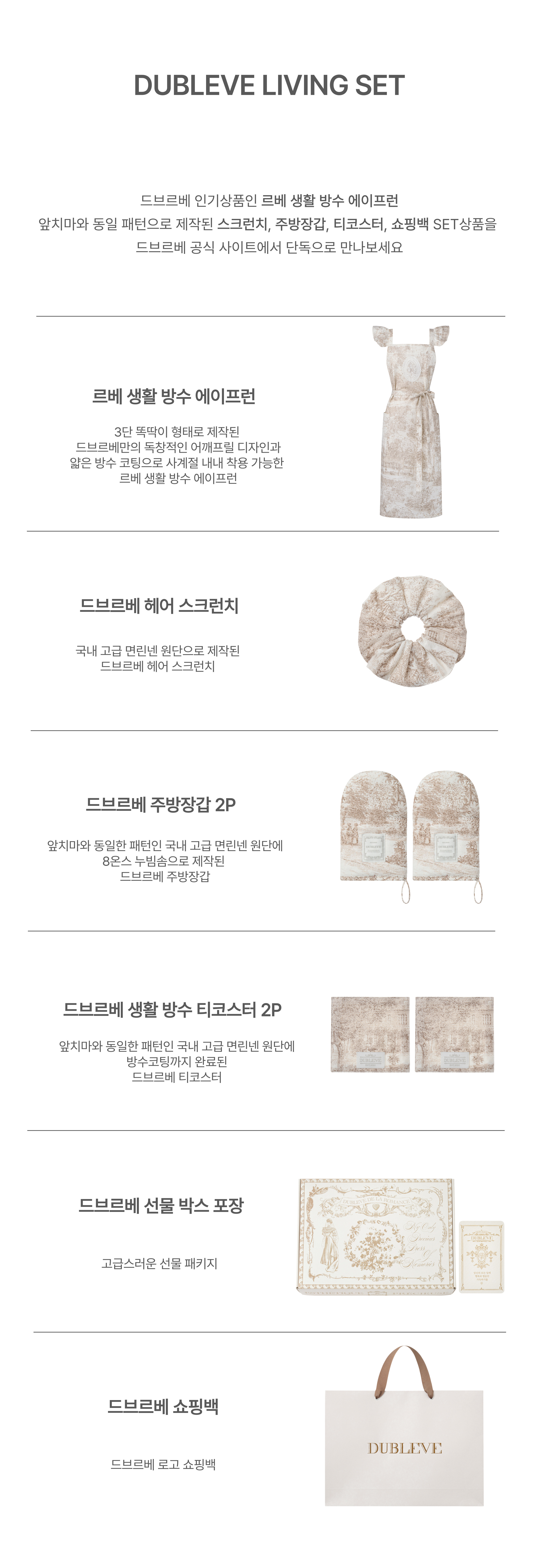 르베 생활방수 에이프런+스크런치+주방장갑2P+티코스터2P+쇼핑백 SET