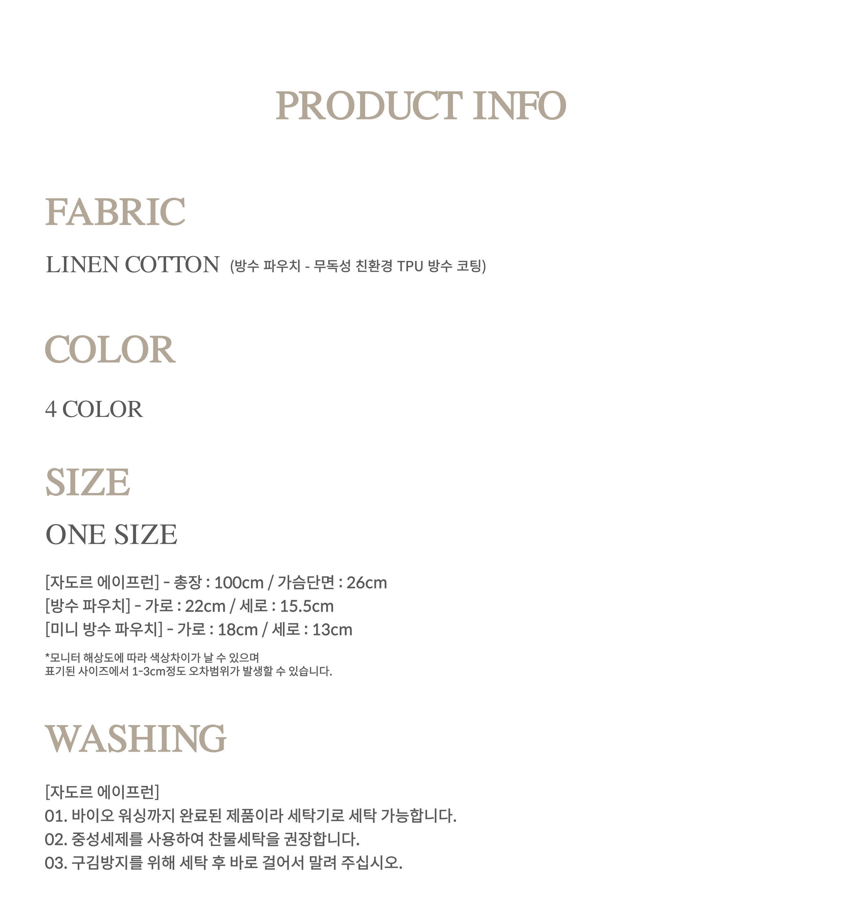 자도르 에이프런+방수 파우치+스크런치+쇼핑백 SET
