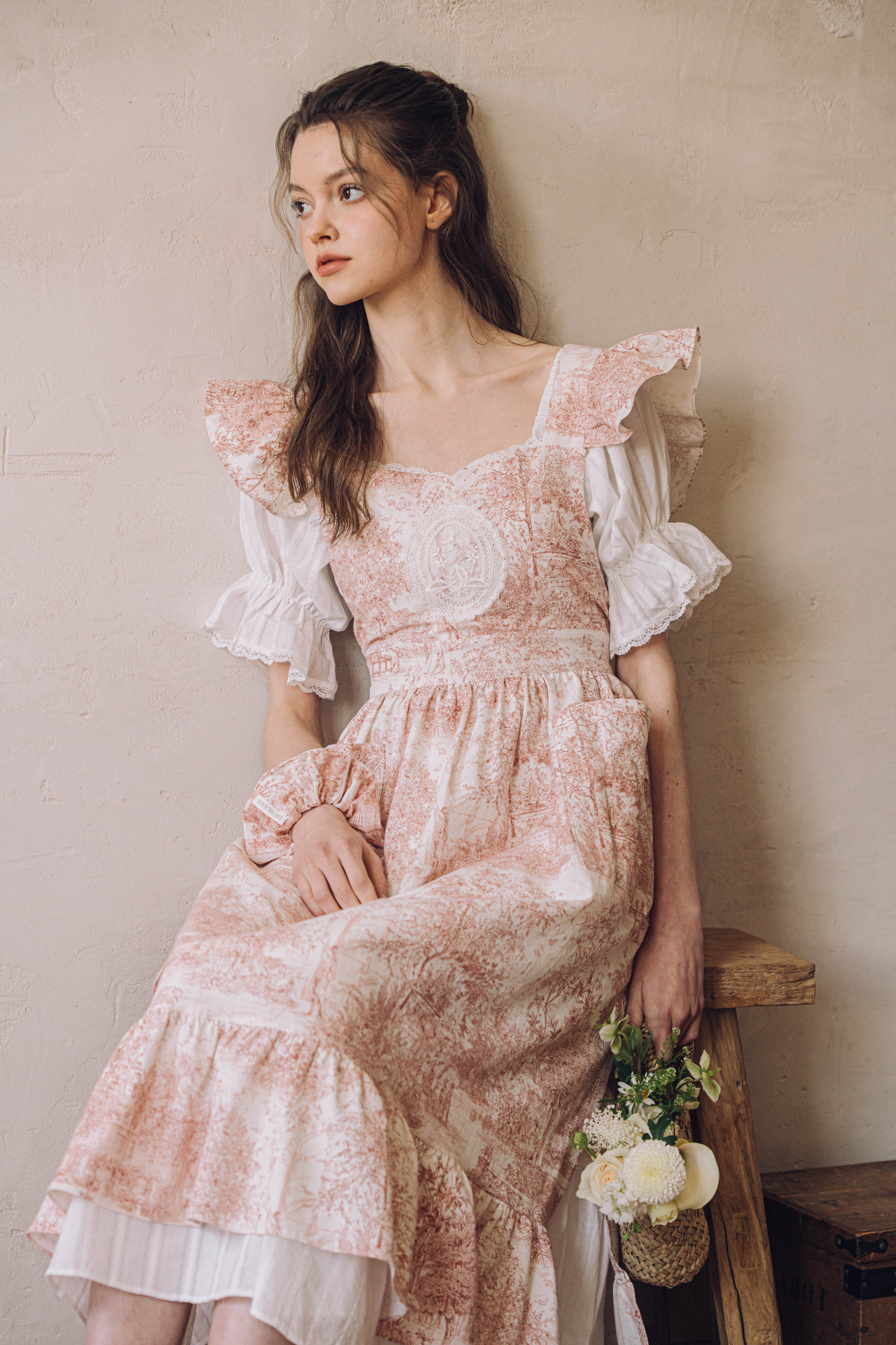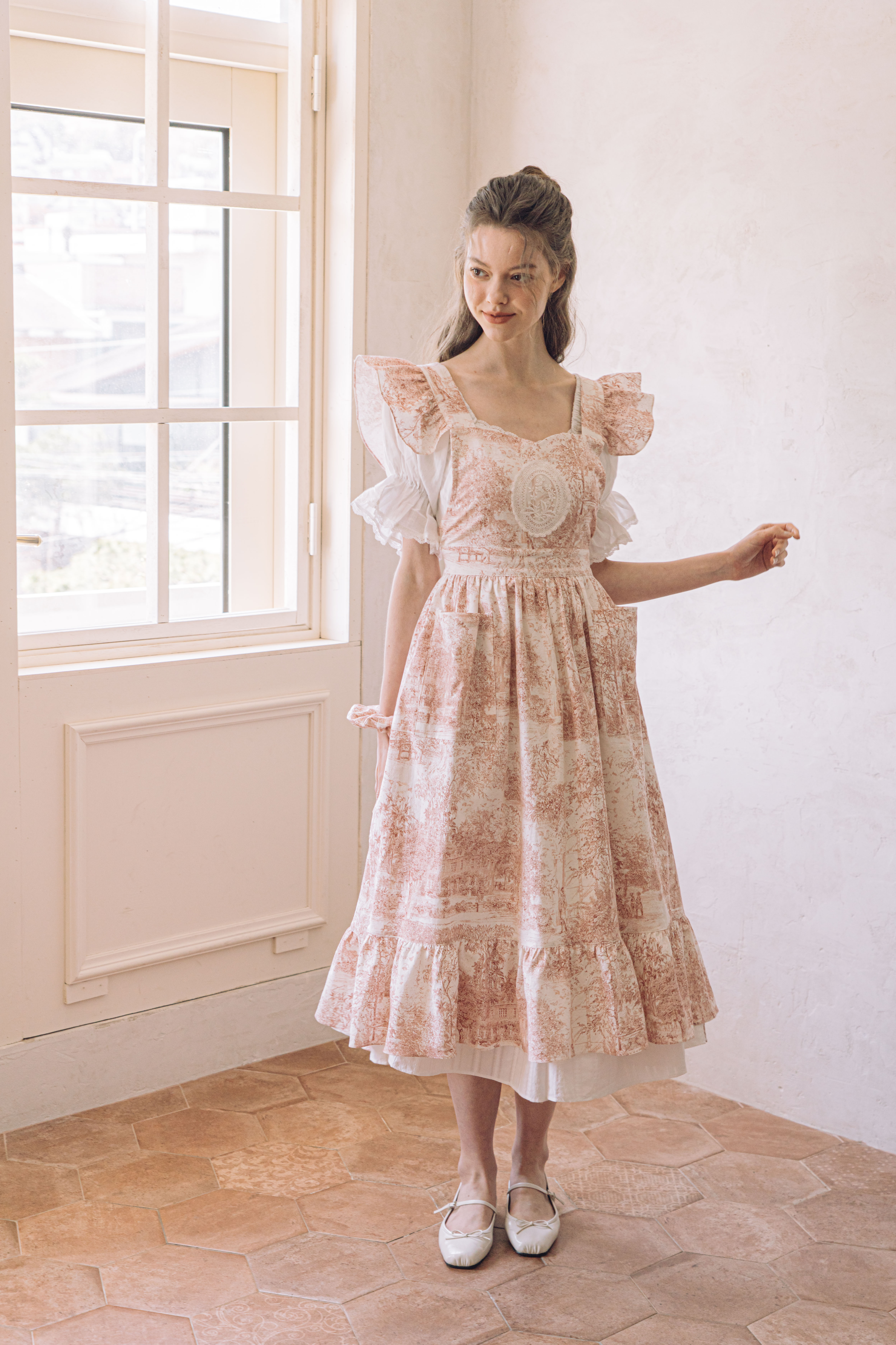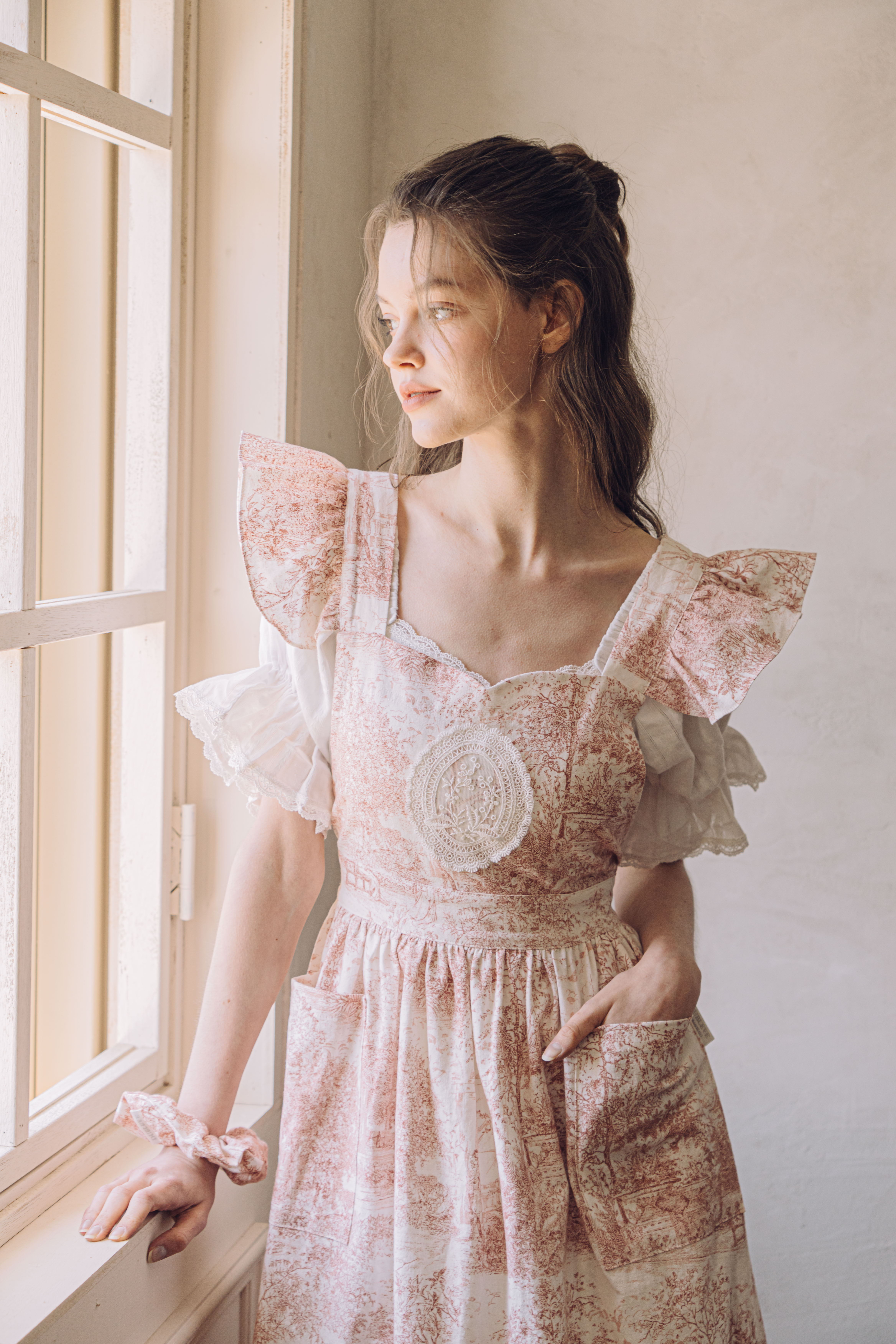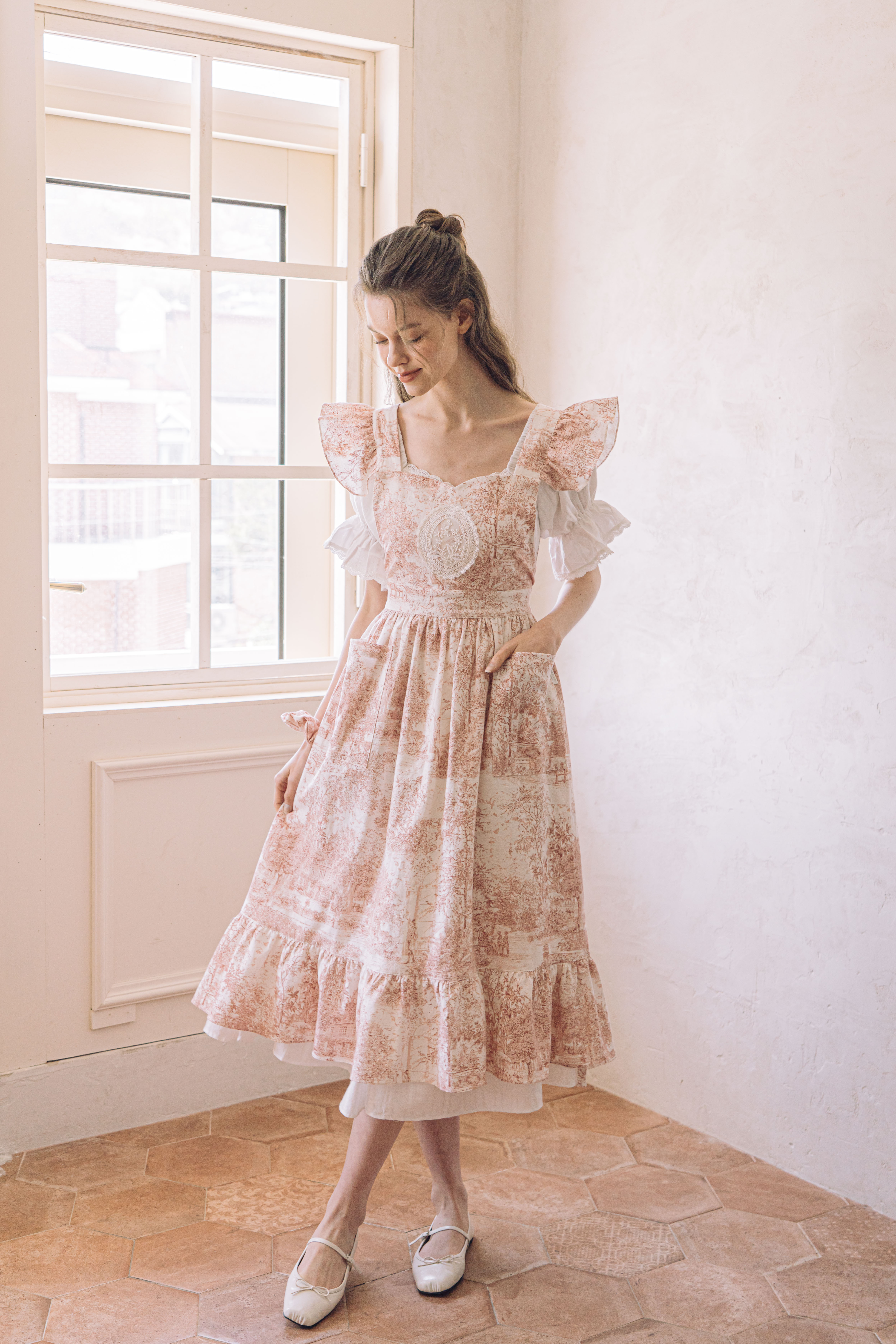 - 하트 모양의 가슴판 , 허릿단 셔링과 어깨 프릴의 포인트로 허리 라인은 잘록하고 스커트 라인은 풍성한 원피스 형 앞치마.