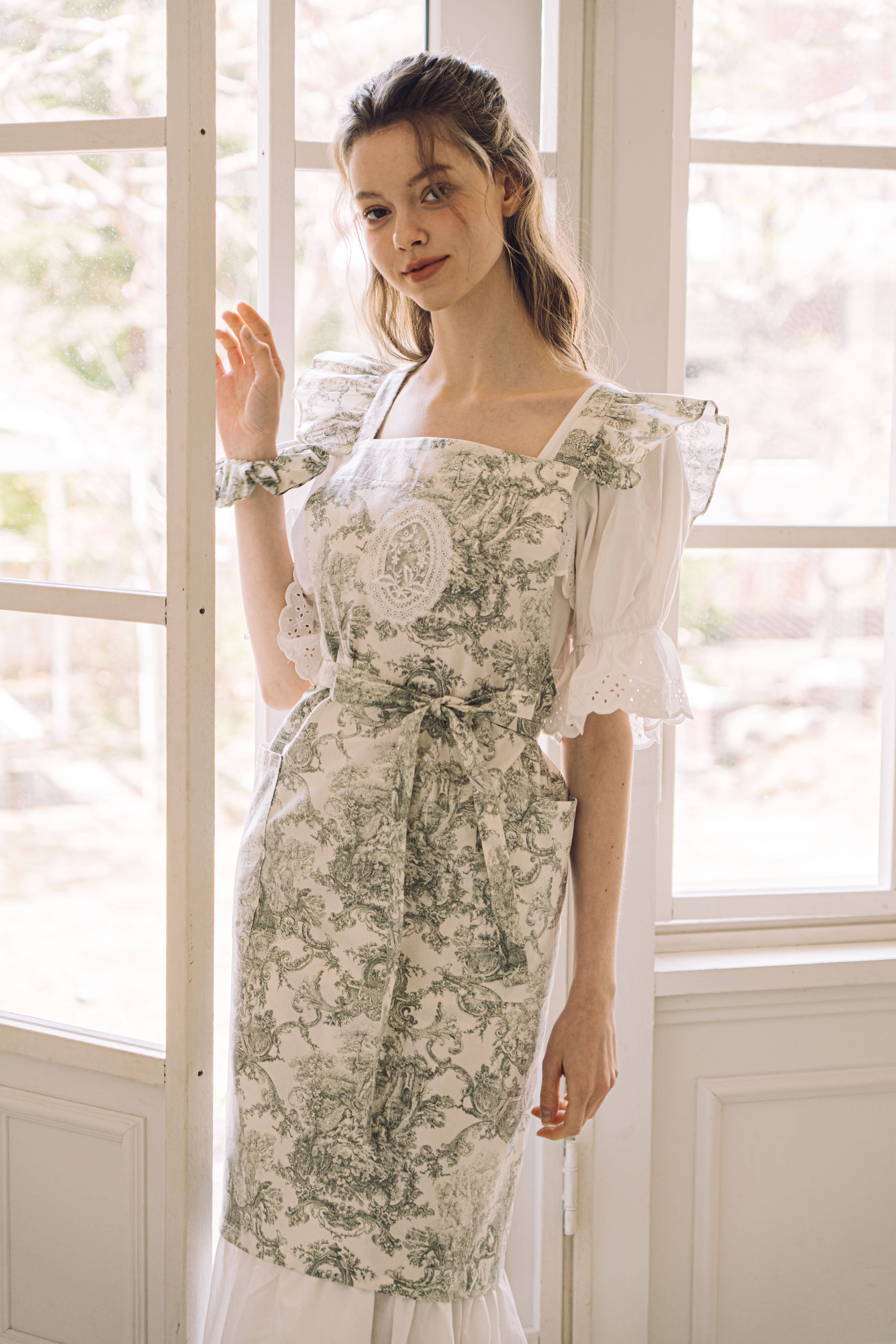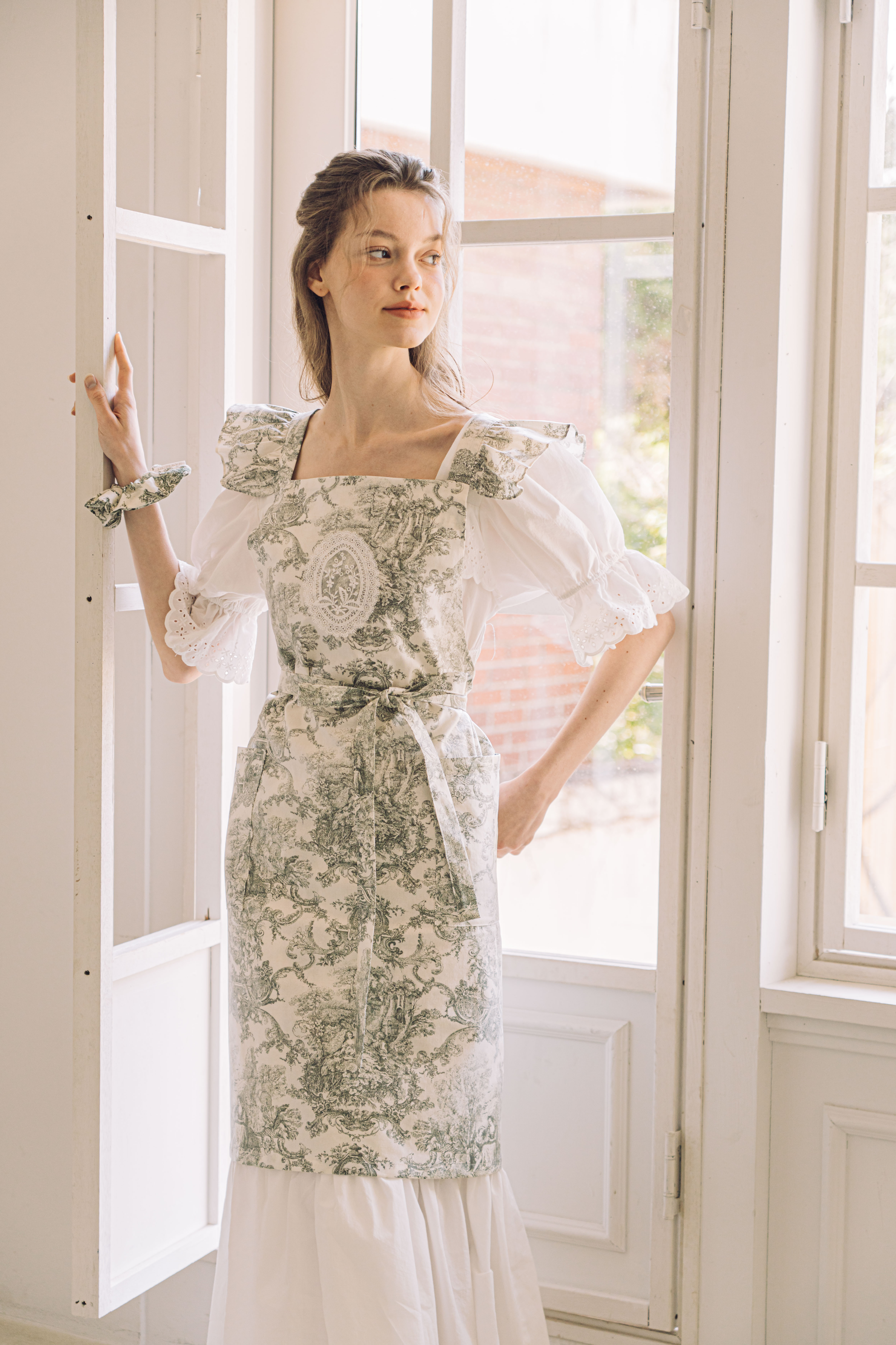 - 허리 끈이 길게 제작되어 앞으로 묶은 후 허리 라인 강조하여 착용 가능