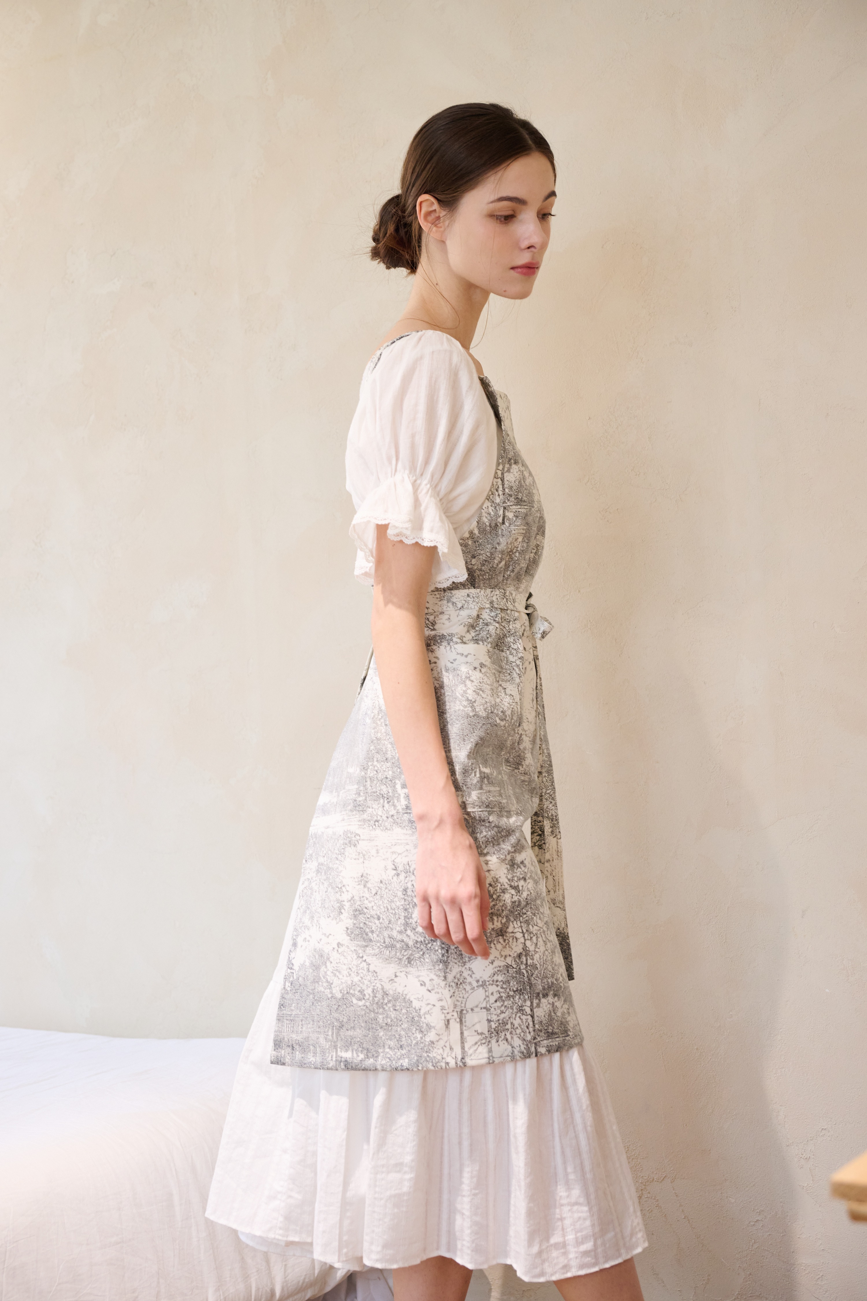 - 허리 끈이 길게 제작되어 앞으로 묶은 후 허리 라인 강조하여 착용 가능