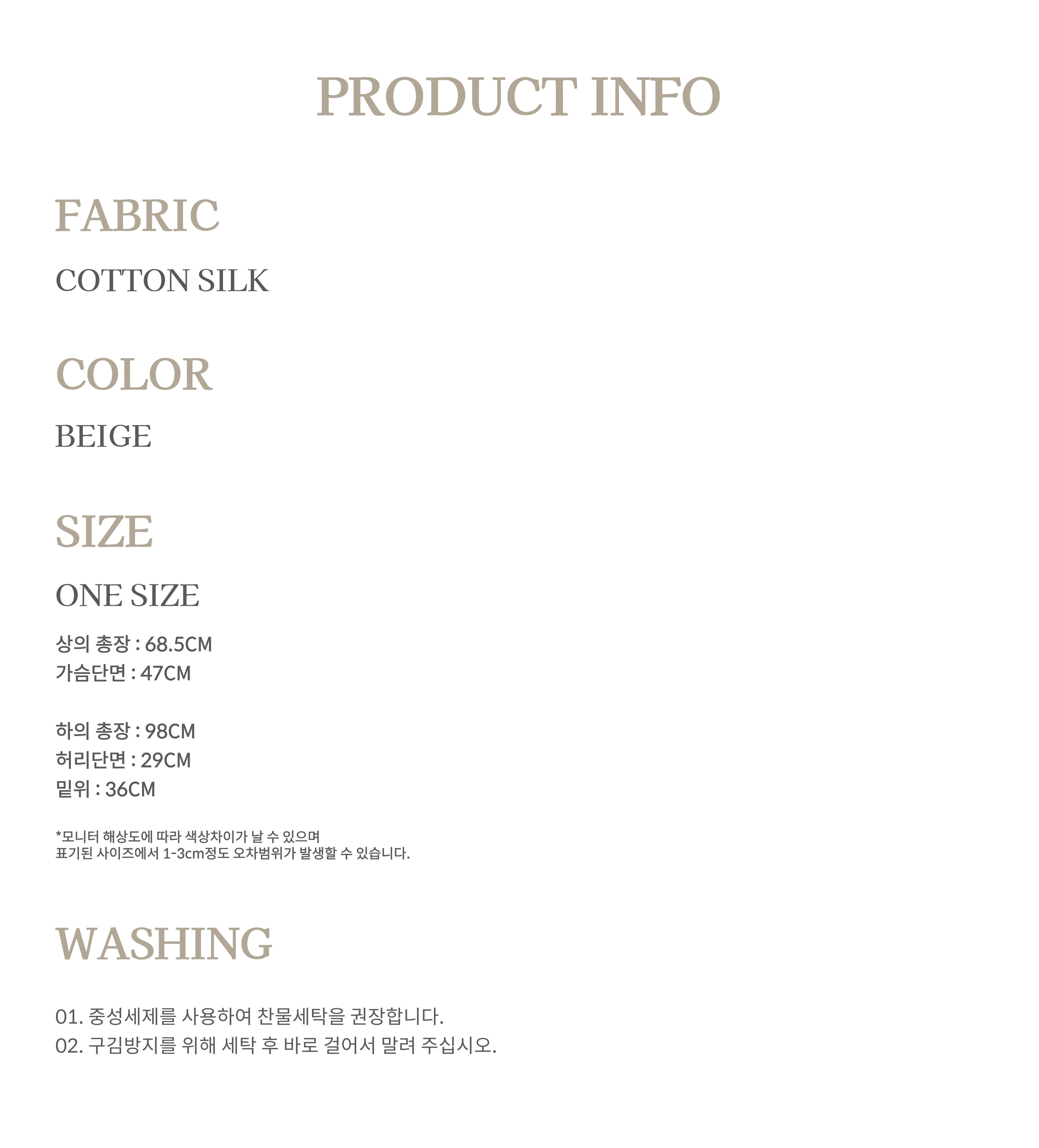 - 국내 고급 면 100% 원단으로 제작된 투피스 세트