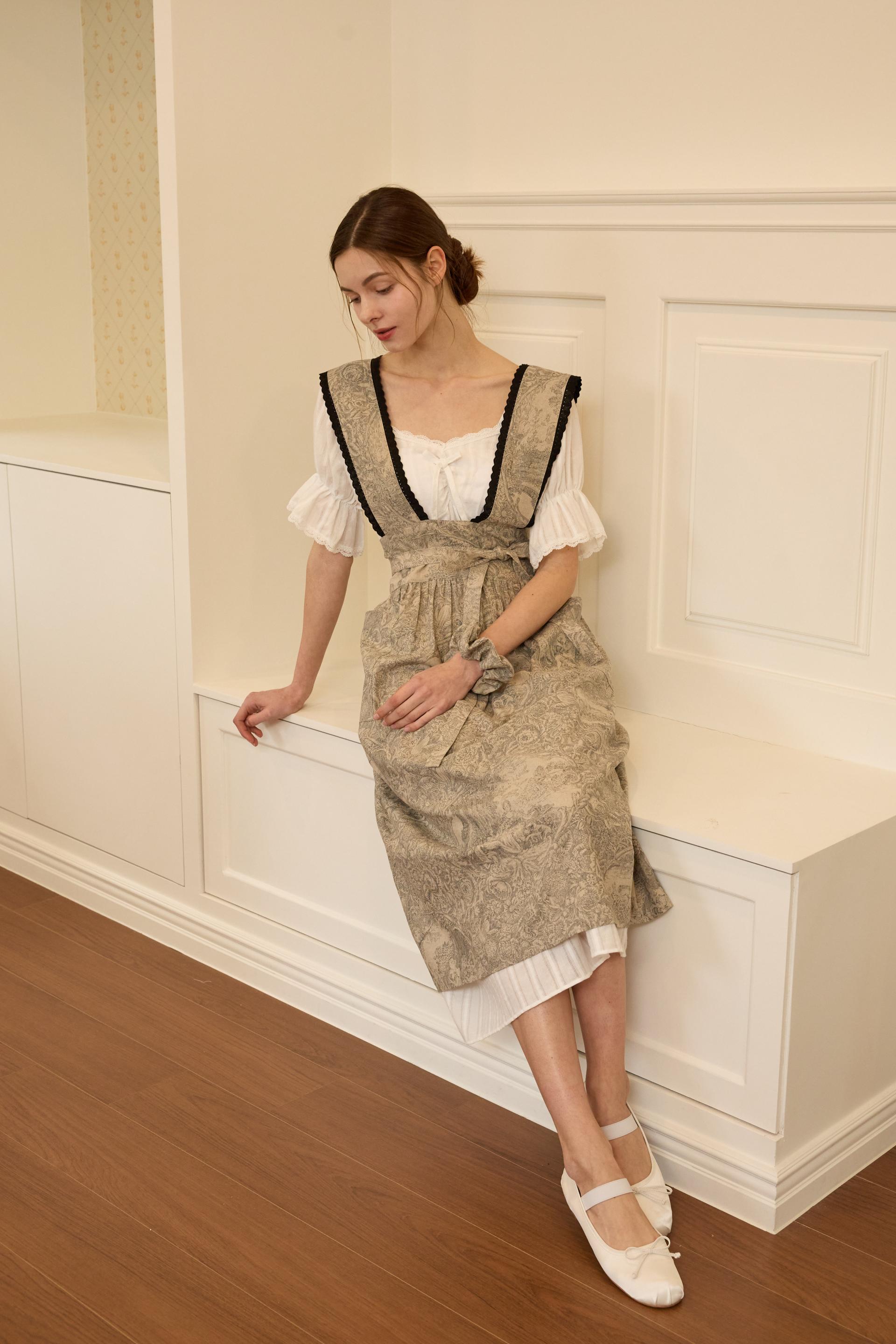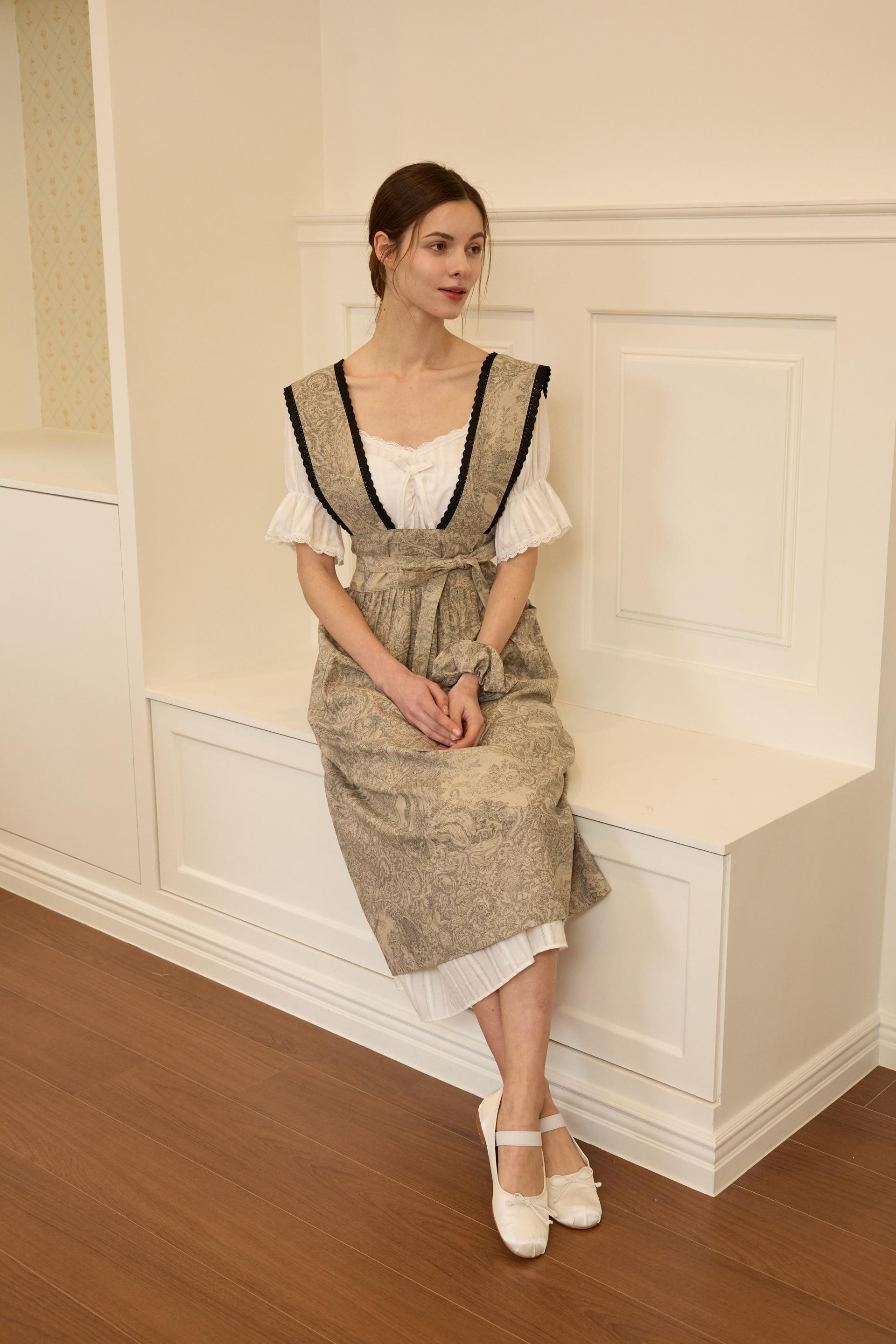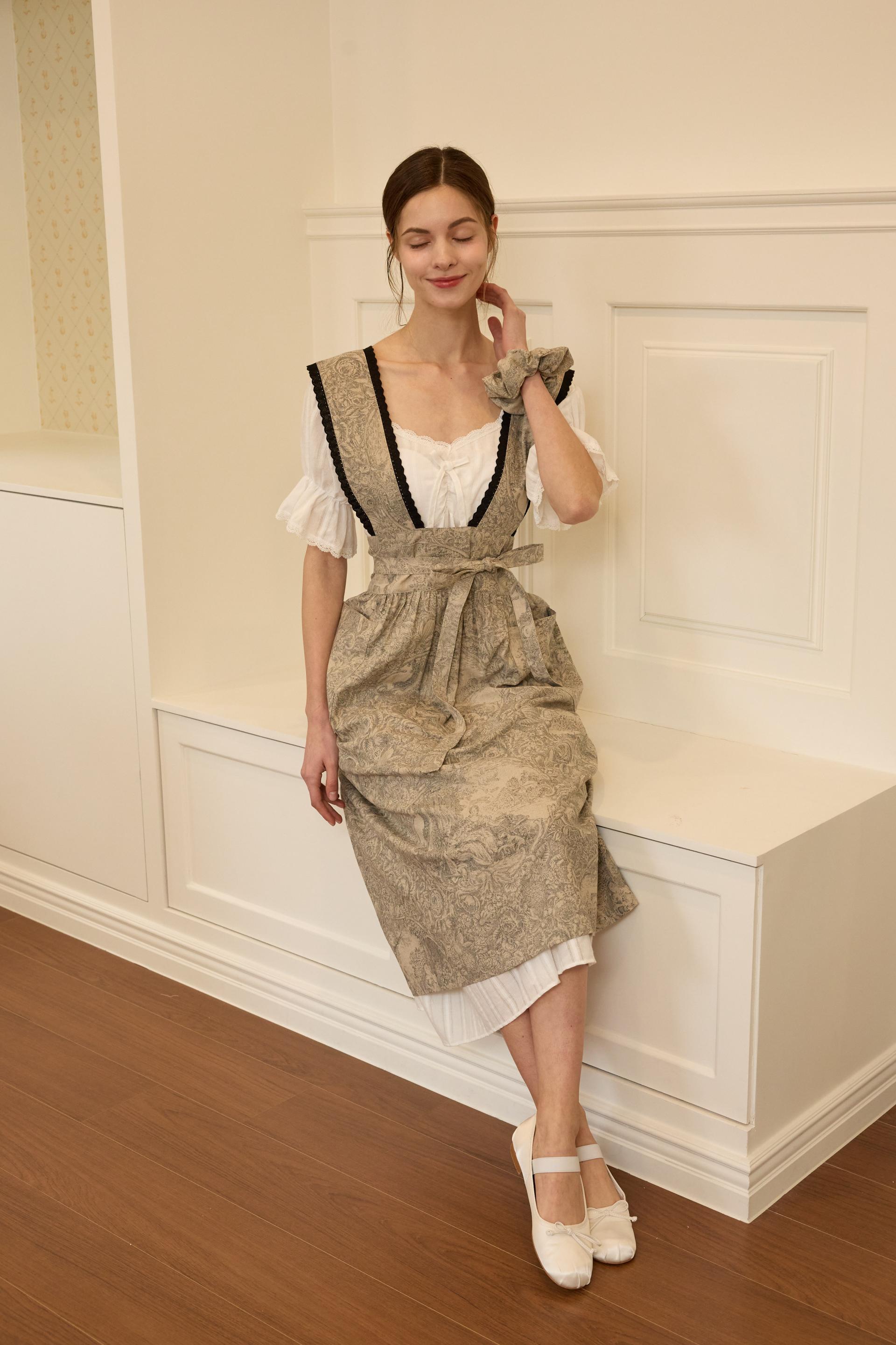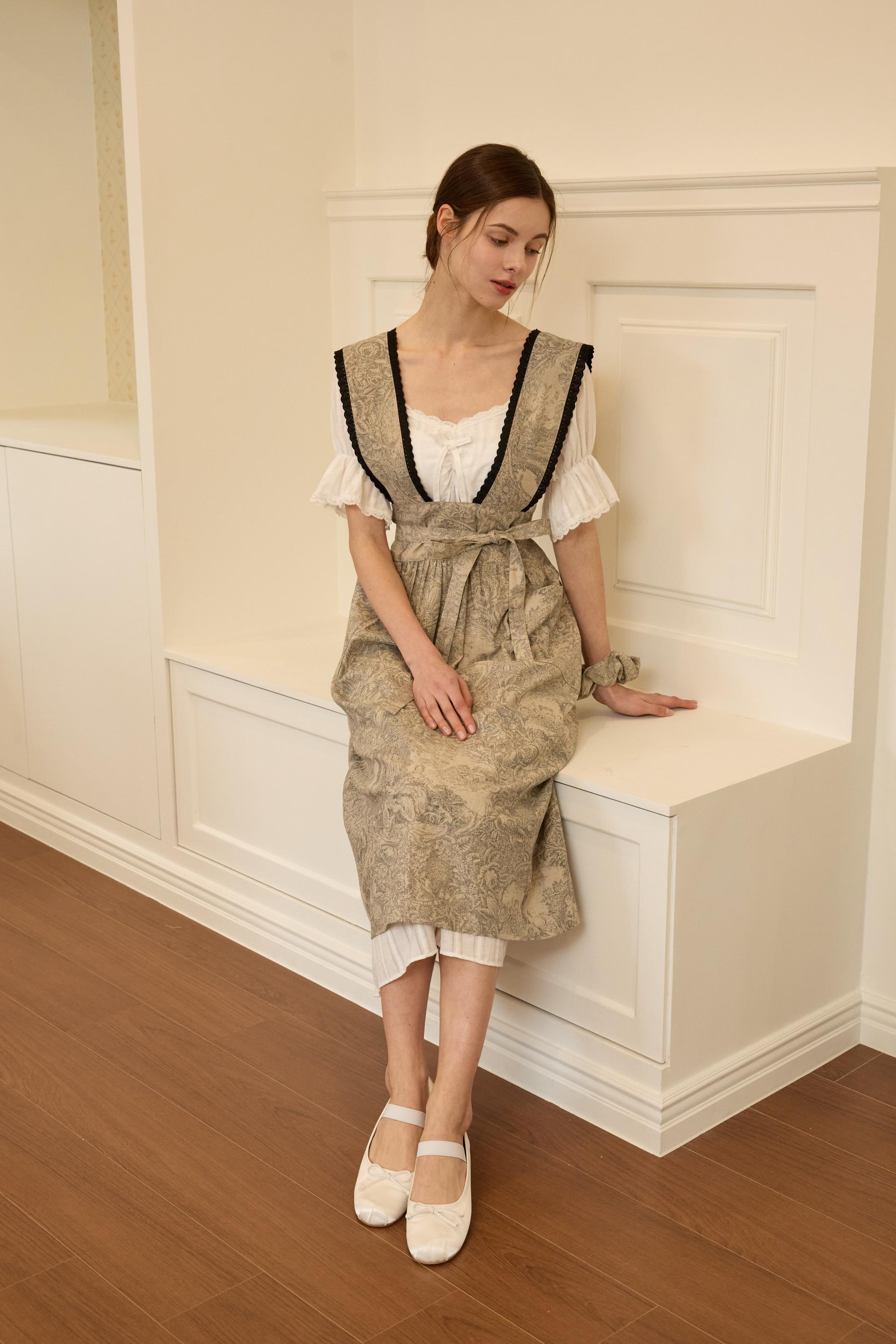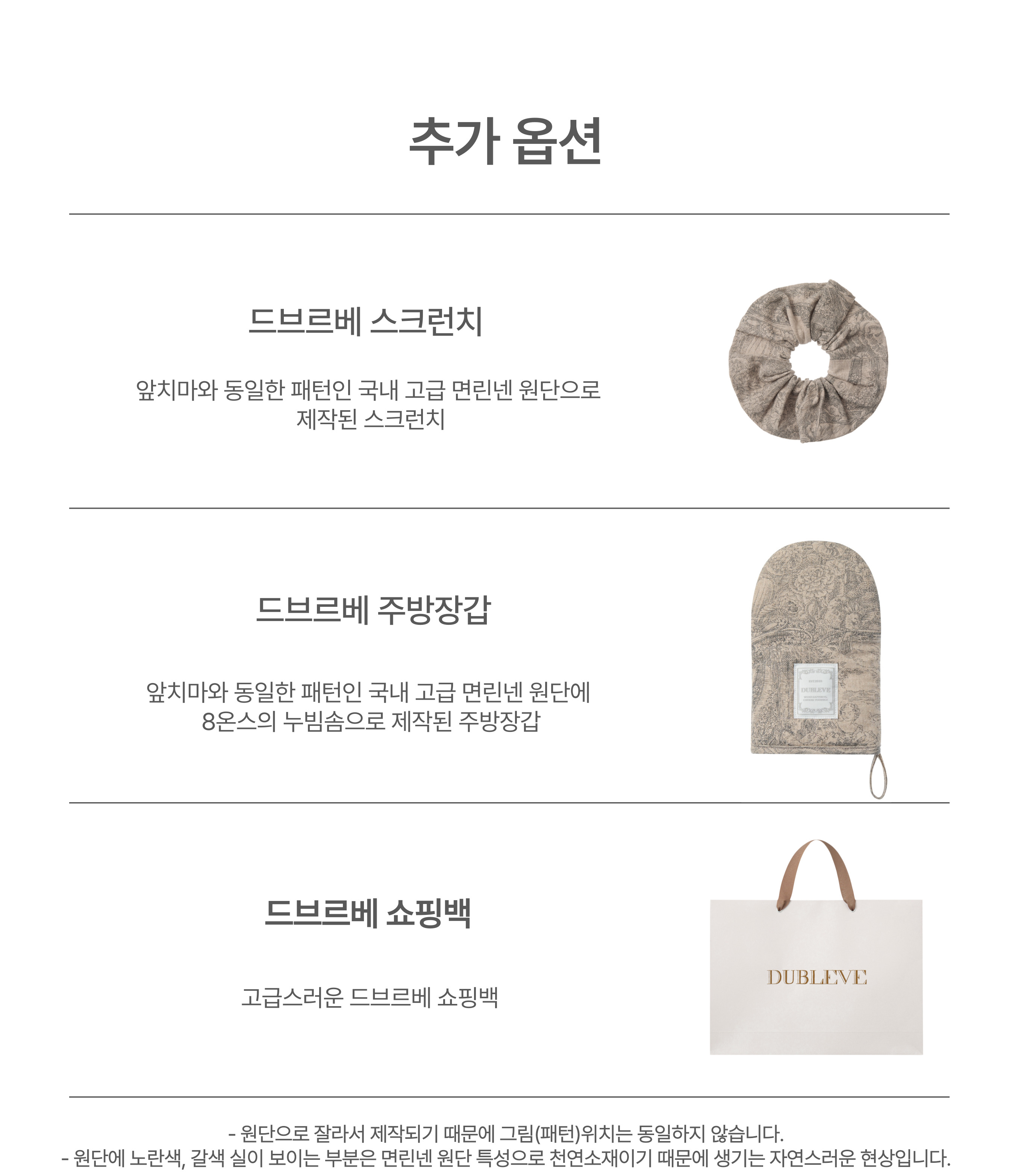 - 고급 면린넨 바이오 워싱 까지 완료된 부드러운 촉감의 어깨 레이스 형 앞치마.