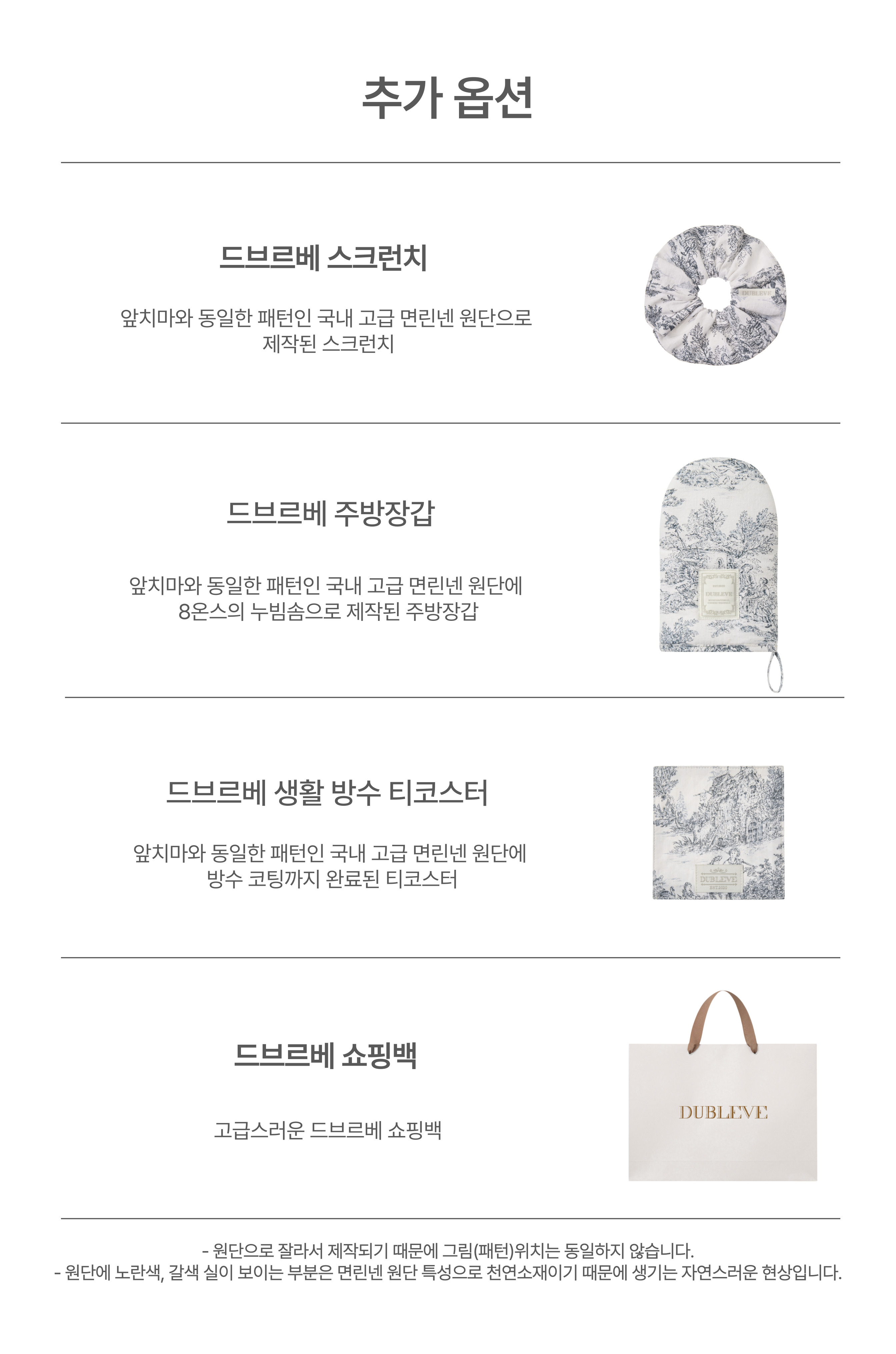 - 고급 면린넨 바이오 워싱까지 완료된 부드러운 촉감의 롱 프릴 앞치마.