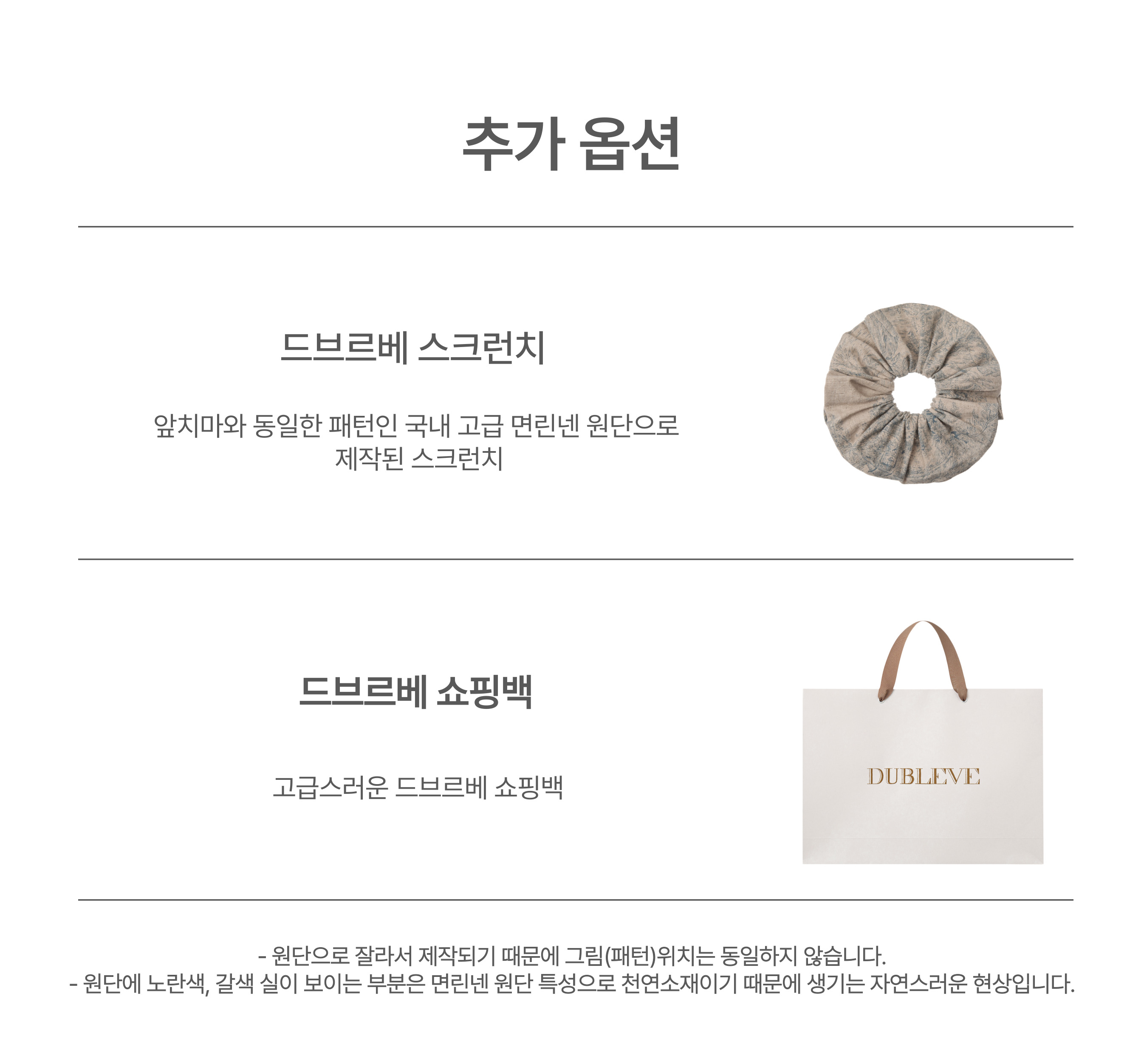 - 차분한 컬러의 원단, 고급스러운 패턴으로 제작